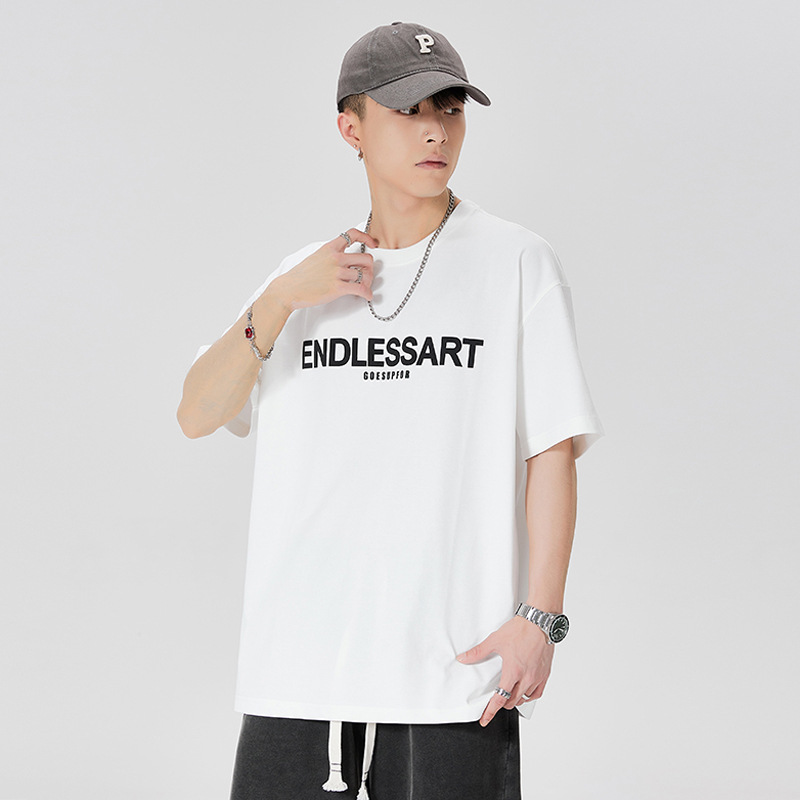 T3212 | 潮太った大きいサイズのメンズ半袖tシャツ2023夏の新型肩に落ちたプリントアルファベット半袖上着男