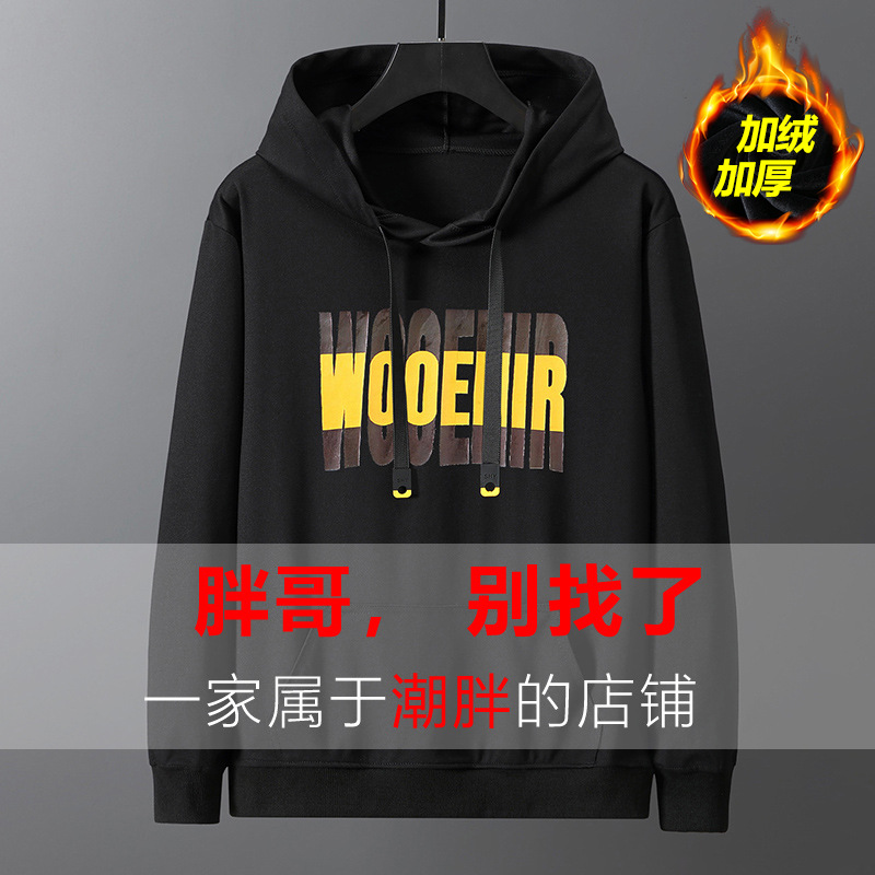 W7026 | 大きいサイズの男性服デブ新品国潮刺繍発泡プリントゆるいカンガルーフードフード