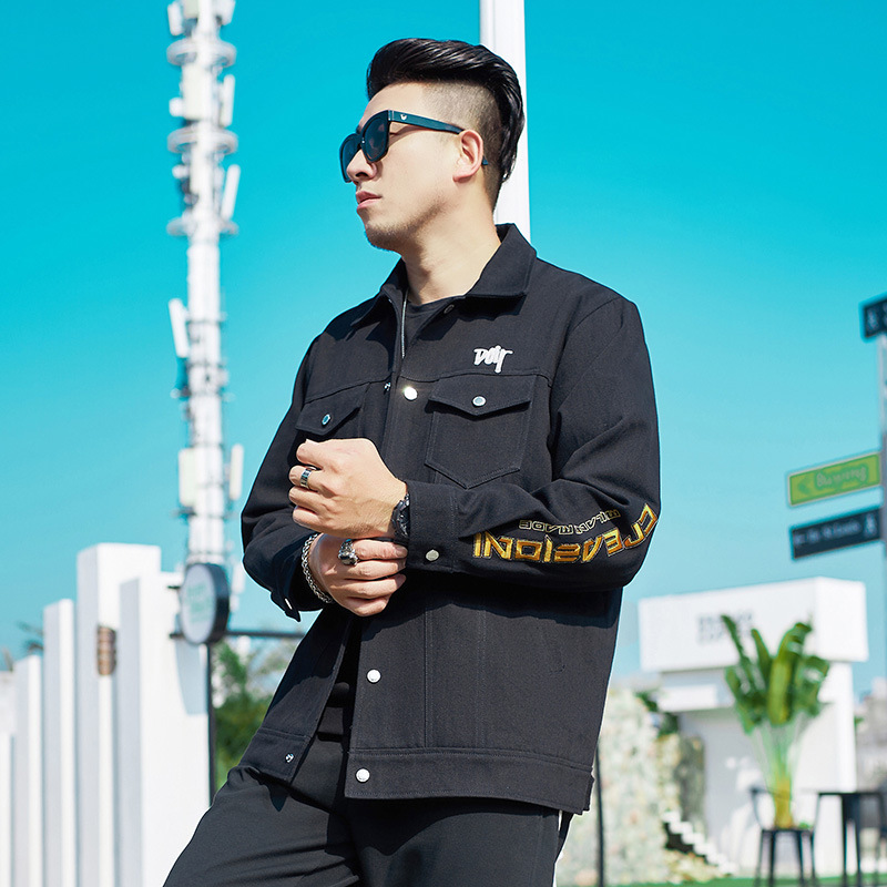 W6023潮牌の大きいサイズの紳士服の太った男300斤の春のアルファベットの刺繍のコートは太って大きいです。
