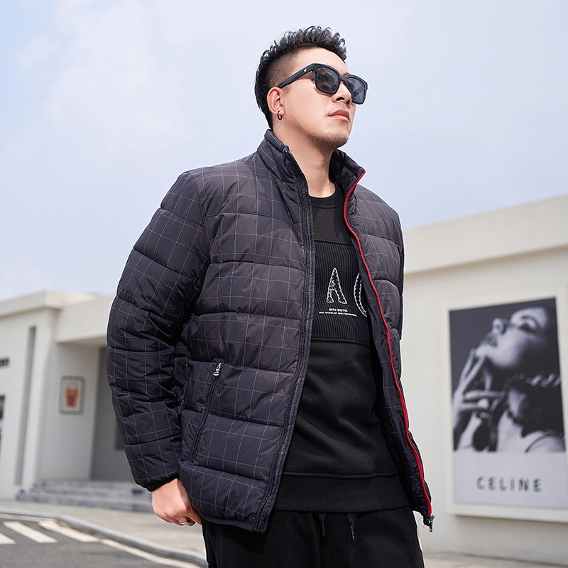 【在庫一掃/特別価格】2201-2 大きいサイズ メンズ 冬 ツーコットン チェック柄 ゆったり スタンドカラー 薄手 中綿コート メンズ