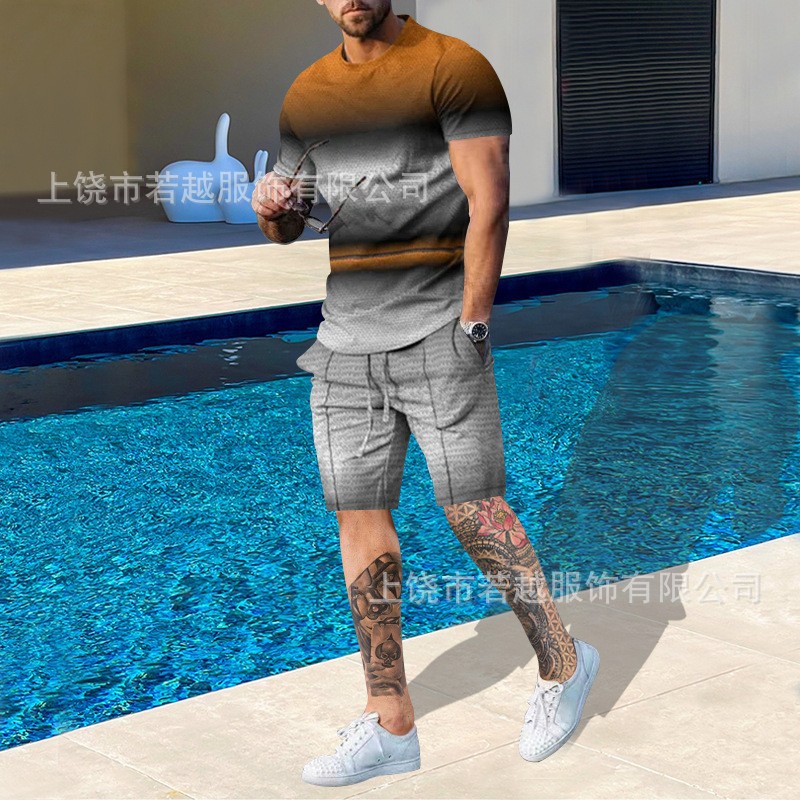 独立したステーションスポーツ紳士服スーツ新しい半袖ショーツカジュアルラウンドネック 3D デジタル印刷夏の紳士服スーツ