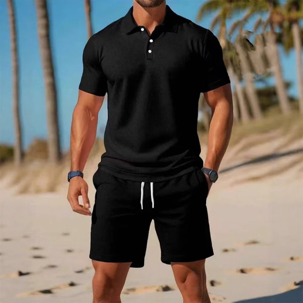 2025夏クロスボーダーソリッドカラーカジュアルルーズスーツ半袖ショーツ