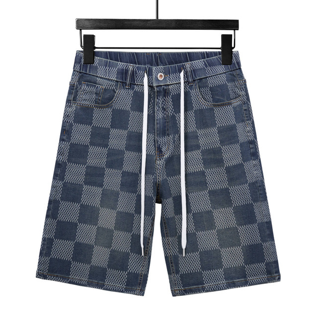 628 トレンドブランド 大きいサイズ ストレッチデニムショートパンツ ゆったり市松模様プリント 薄手 太った人 夏 5点ミドルパンツ 300