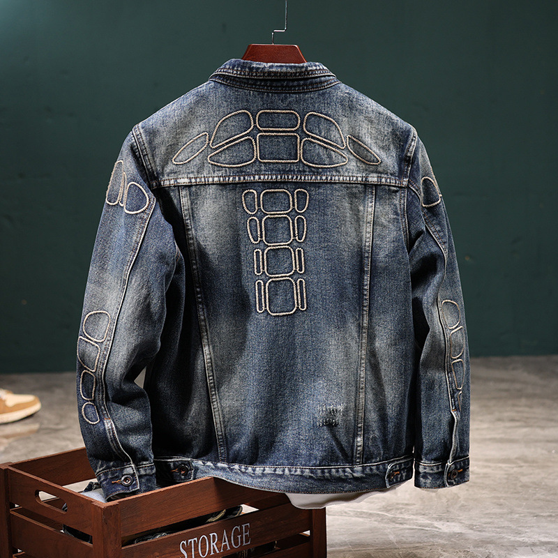 刺繍デニムジャケットメンズ秋冬ヘビーコート2025新デザイン大きいサイズルーズトップ
