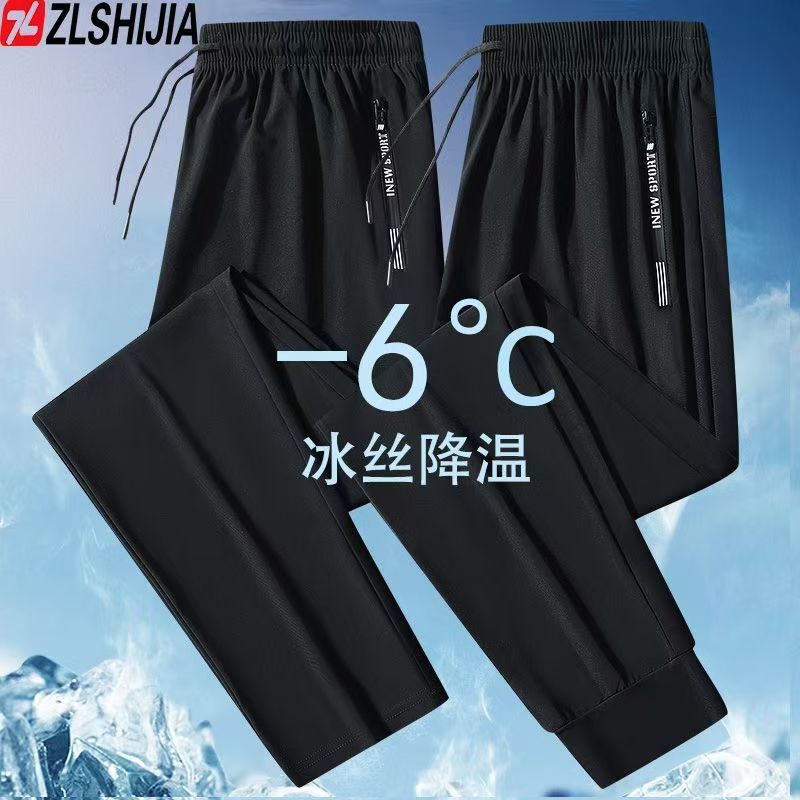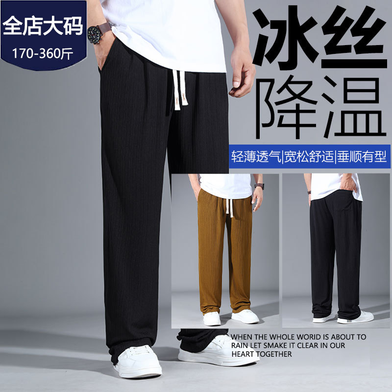 大きいサイズの夏のアイスシルク高弾性カジュアルパンツメンズルーズでファッショナブルな中年プラスファットスポーツパンツ軽量メンズパンツ