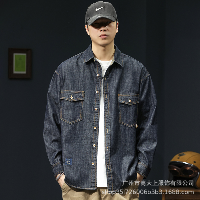 8315 # メンズ大きいサイズ無地ルーズ長袖カジュアルシンプル多用途デニムシャツ特大メンズジャケットシャツトレンディ