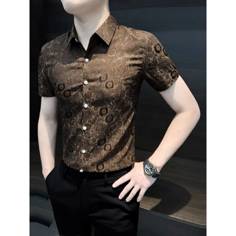 メンズシャツ半袖国民風春夏新作プリントハイエンドハンサムスリム花柄シャツ