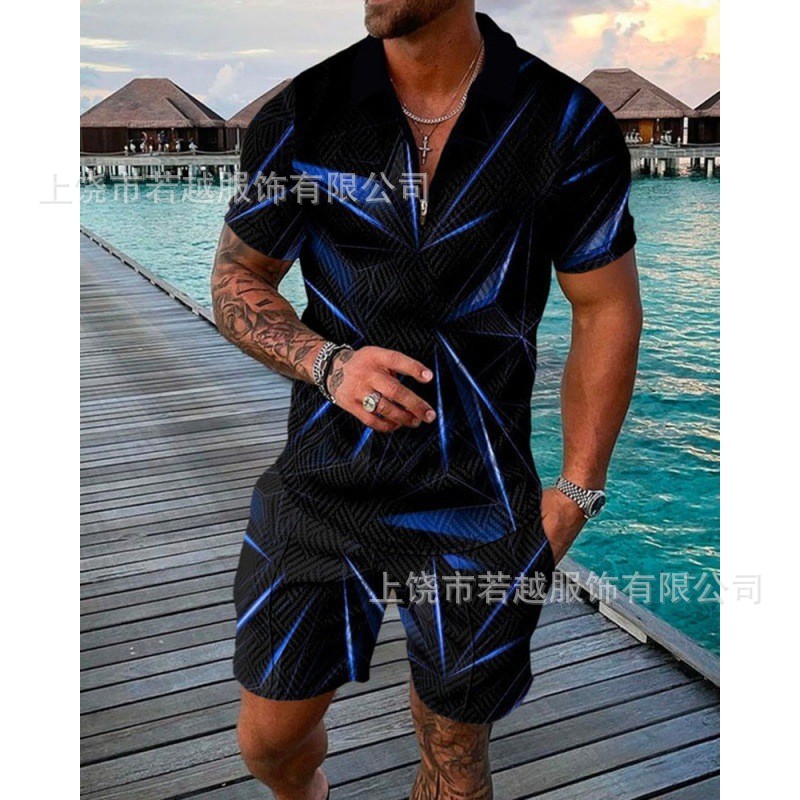 Amazon 売れ筋ヨーロッパとアメリカのクロスボーダーファッション新しいカラーマッチング 3D デジタル印刷メンズ半袖ポロシャツスーツ