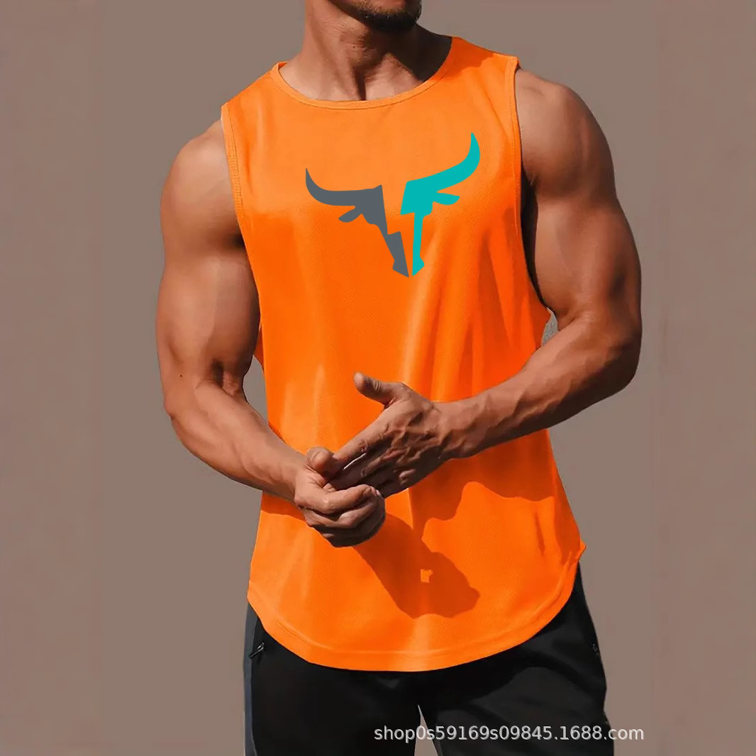 大きいサイズの夏の売れ筋メンズベスト牛頭プリントラウンドネックフィットネス通気性吸汗性「B02」 # R799