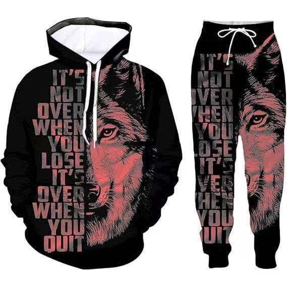 クロスボーダー 3D プリント大きいサイズルーズフード付きメンズスウェットシャツプルオーバー卸売 2024 新しいフード付きスウェットシャツスーツ