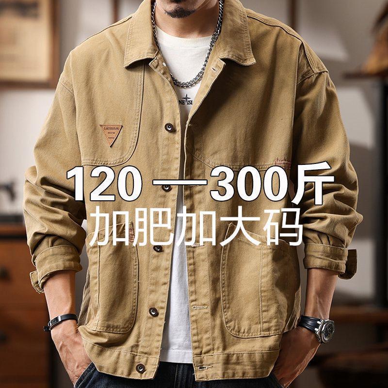 秋冬メンズ大きいサイズデニムジャケットルーズファットアメリカンスタイル学生プラスファットプラスサイズジャケットトレンディ