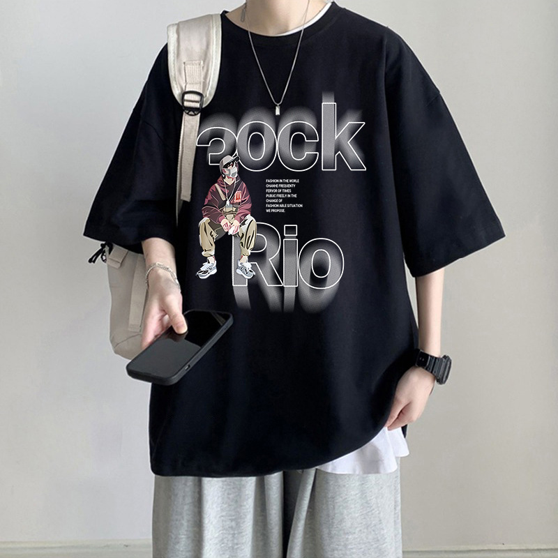 2025 半袖 Tシャツメンズ夏ルーズ大きいサイズ半袖カジュアル多用途韓国スタイルラウンドネックプリント学生トップ