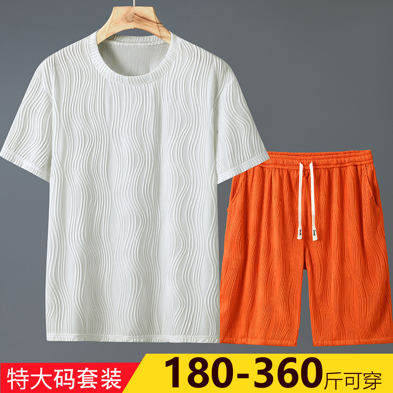 プラスサイズの男性用アイスシルクスーツ、ファットカジュアル半袖ショーツスーツ、プラスファット、男性用サマースポーツツーピーススーツ