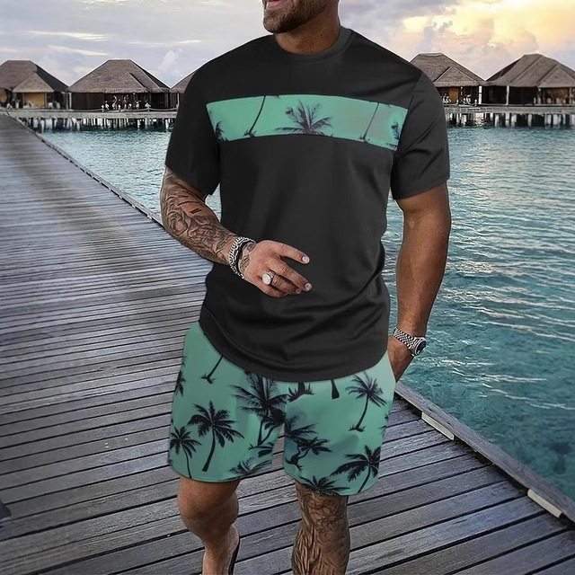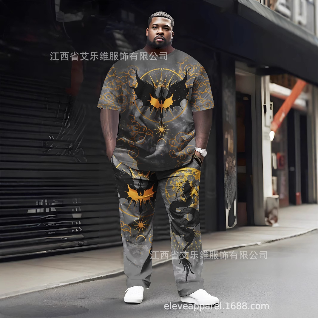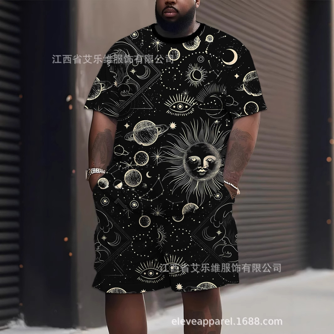 ドロップシッピングクロスボーダーアマゾンプラスサイズ夏の新しいカジュアル 3D プリントスーツメンズ半袖スーツ Tシャツ