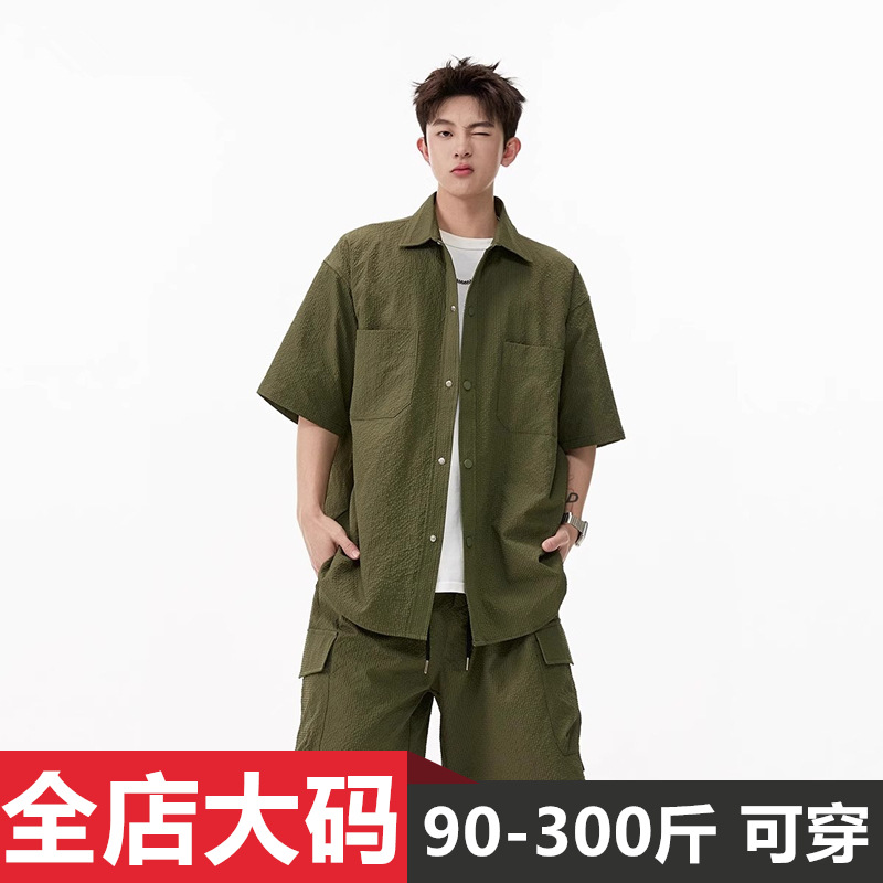リラックス感の大きいサイズの工装半袖シャツセット男性2025夏のゆるいカジュアルな襟シャツ2点セットの潮