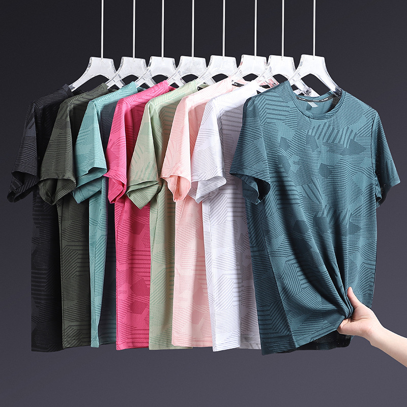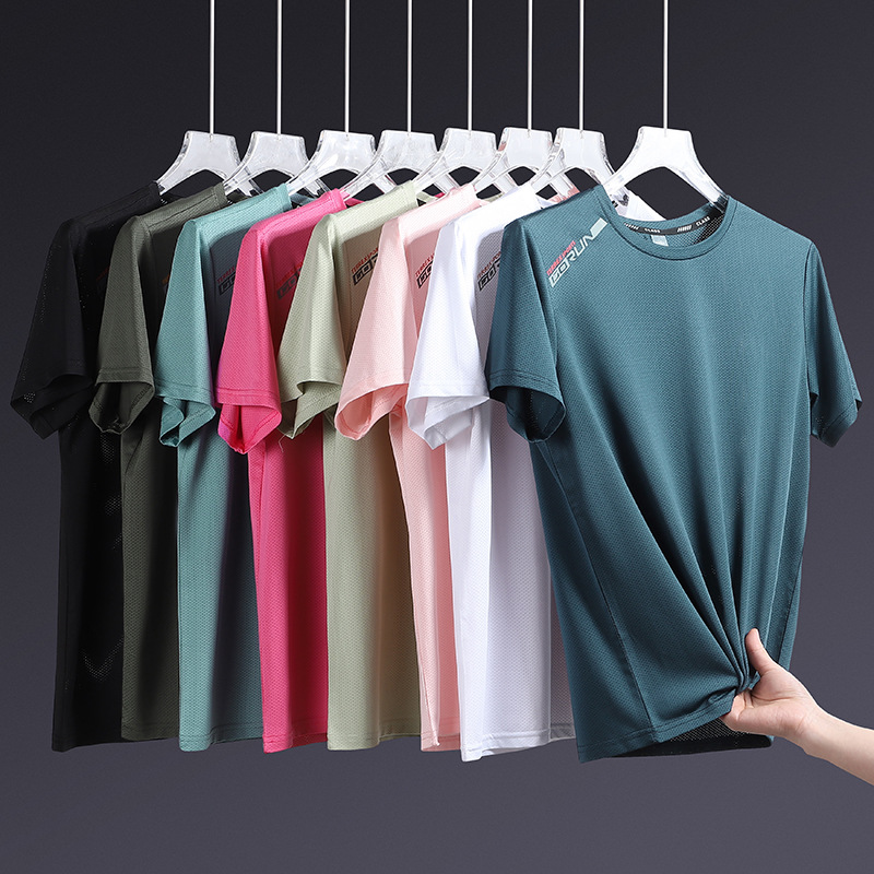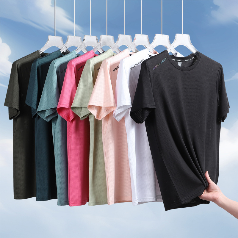 夏用の男性と女性用の半袖Tシャツ、薄いアイスシルクの速乾性Tシャツ、通気性のある半袖、大きいサイズ、クールなスポーツ、ゆったりとしたプラスファット