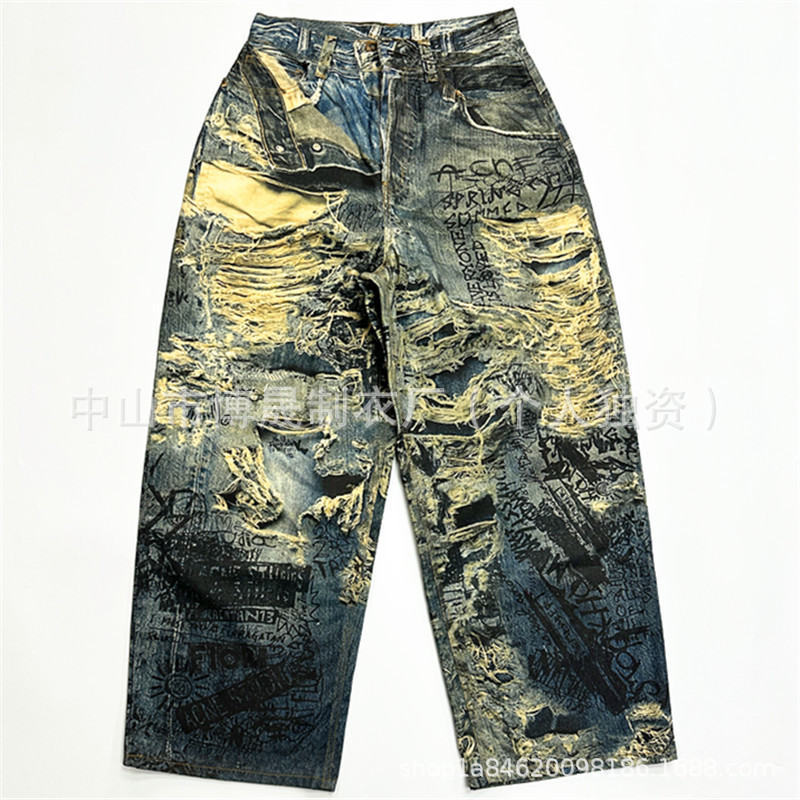 JYF-2335の水洗い工装春秋vi潮牌は古いジーパンの男のごろつきをします。