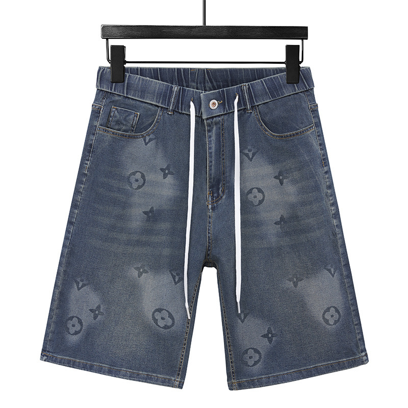 6368潮牌の大きいサイズの弾力のデニムの半ズボンのゆったりした版の古い花のプリントの薄い金のデブの夏の5分の中でズボンの300