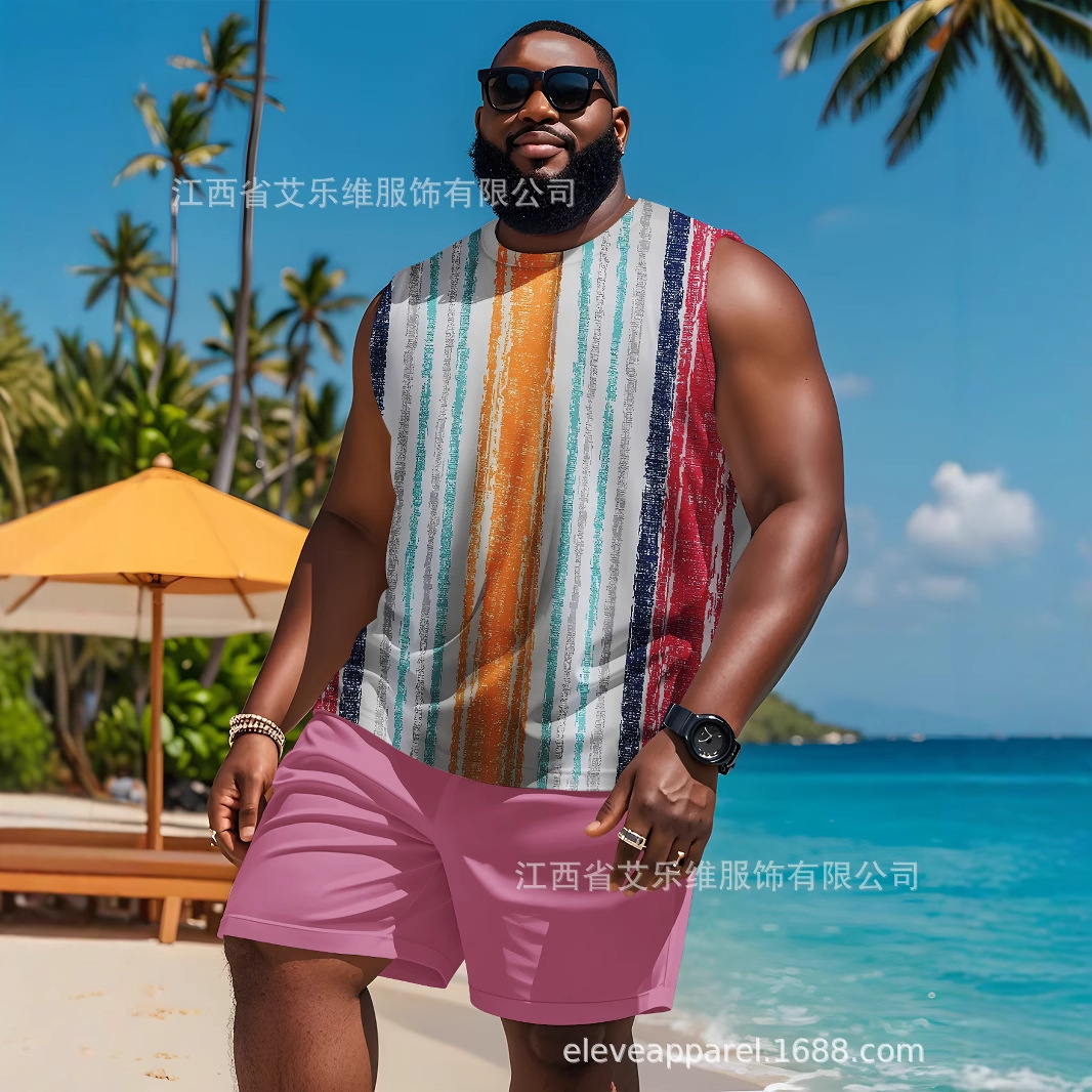 ヨーロッパとアメリカの新しい四季アメリカンカジュアルスタイル越境電子商取引3Dデジタルプリントベストショーツ大きいサイズスーツ
