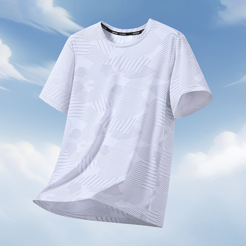 夏用の男性と女性のための通気性のある半袖Tシャツ、薄いアイスシルク、速乾性、ゆったりとしたプラスファットスポーツ、大きいサイズの半袖クールTシャツ
