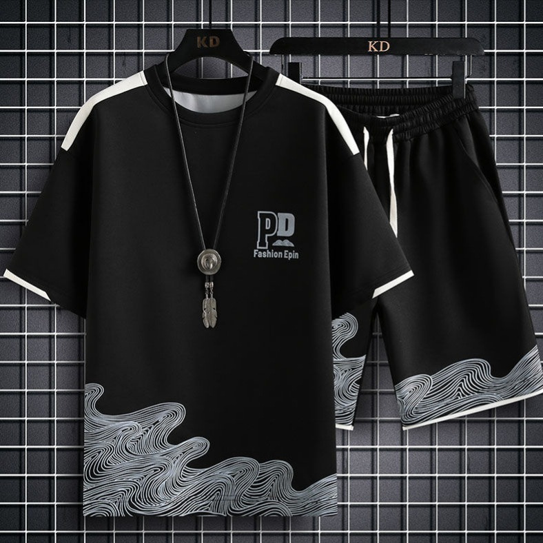 夏の学生半袖Tシャツメンズカジュアルスポーツスーツゆったり大きいサイズ香港風半袖ショーツハンサムなトレンドセット