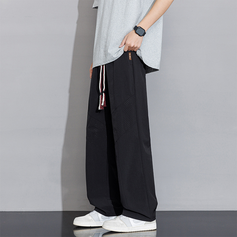アイスシルクパンツメンズ夏薄いカジュアルドレープ通気性弾性速乾性ワイドレッグスポーツ超薄型ストレートパンツ