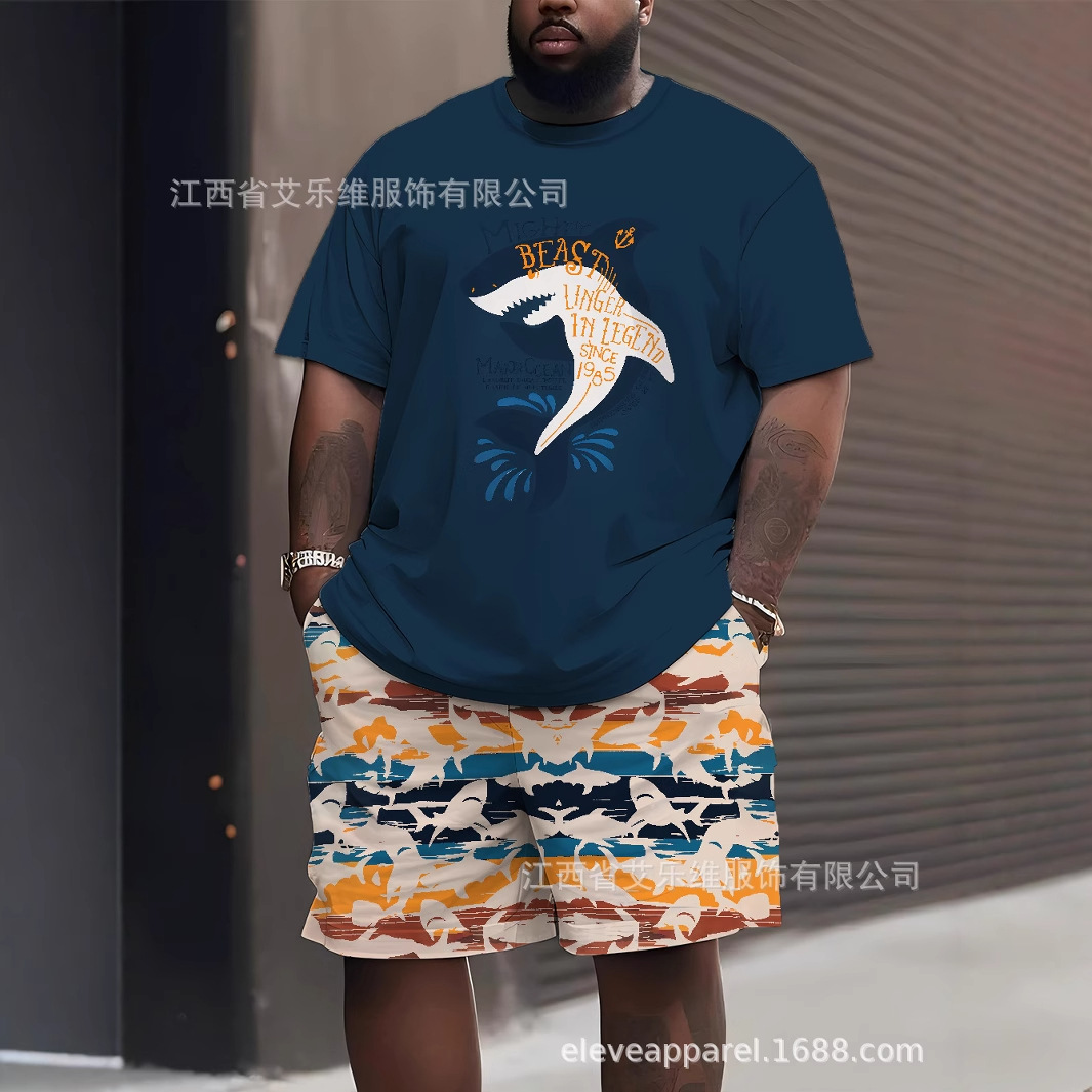 ヨーロッパとアメリカの新しい四季動物スタイルダークパターンクロスボーダー3Dデジタルプリントショーツ半袖大きいサイズスーツ