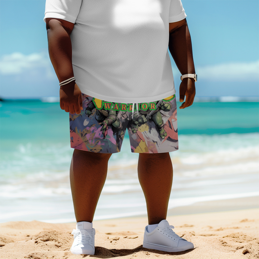 クロスボーダー新しい漫画パターンプリント大きいサイズファットショーツ夏カジュアルルーズトレンディメンズショーツ