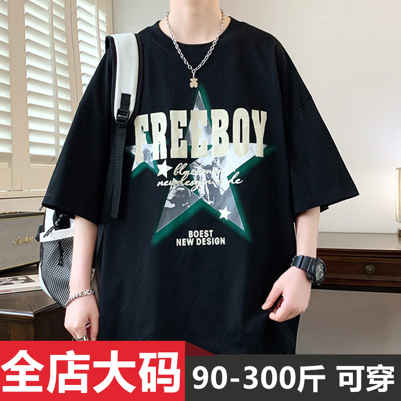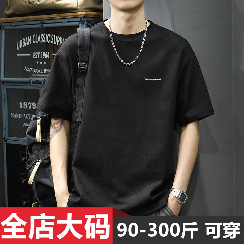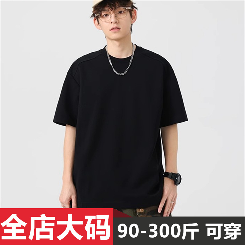 新しいヘビーウェイトアメリカン半袖Tシャツメンズゆったり大きいサイズ150kgシンプルカジュアルボトムストレンディブランド半袖Tシャツ夏