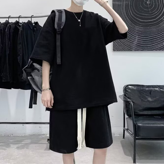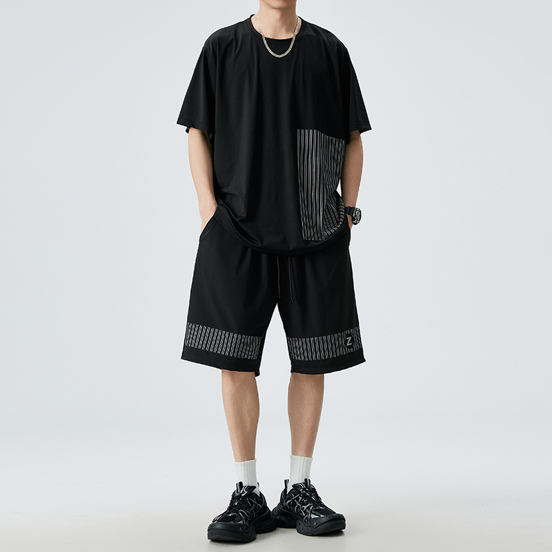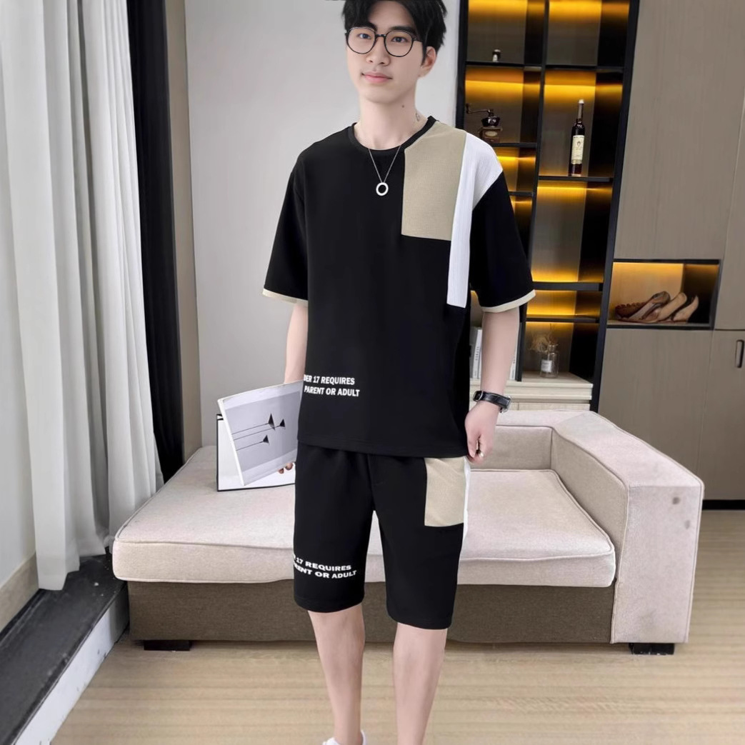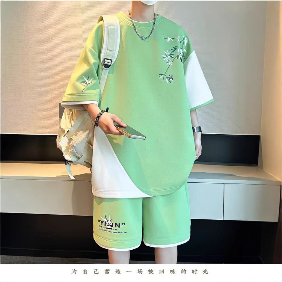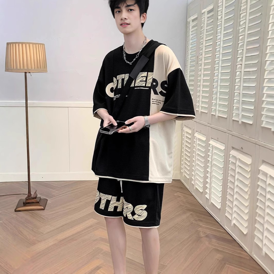2025 夏薄手ツーピース半袖 Tシャツ 5 分パンツシティボーイトレンディな多用途カジュアルティーンスーツ
