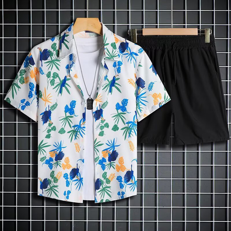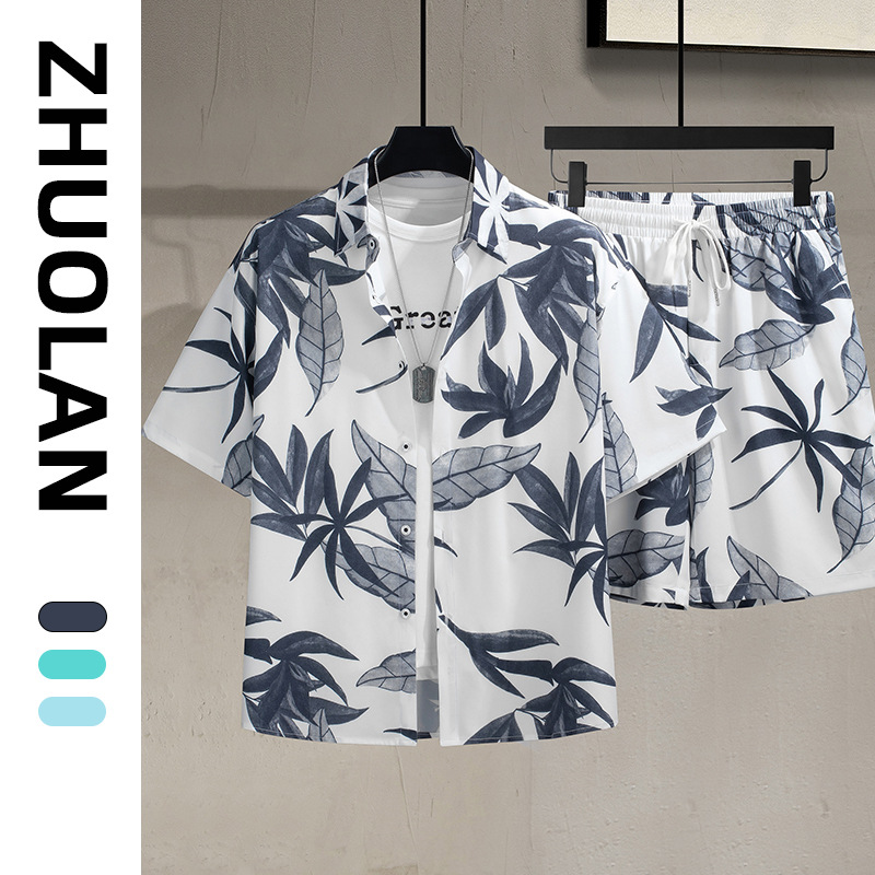 カジュアルアロハシャツショートパンツ夏のトレンドルーズ半袖日本製ストリートビーチカップルビーチスーツ男性用