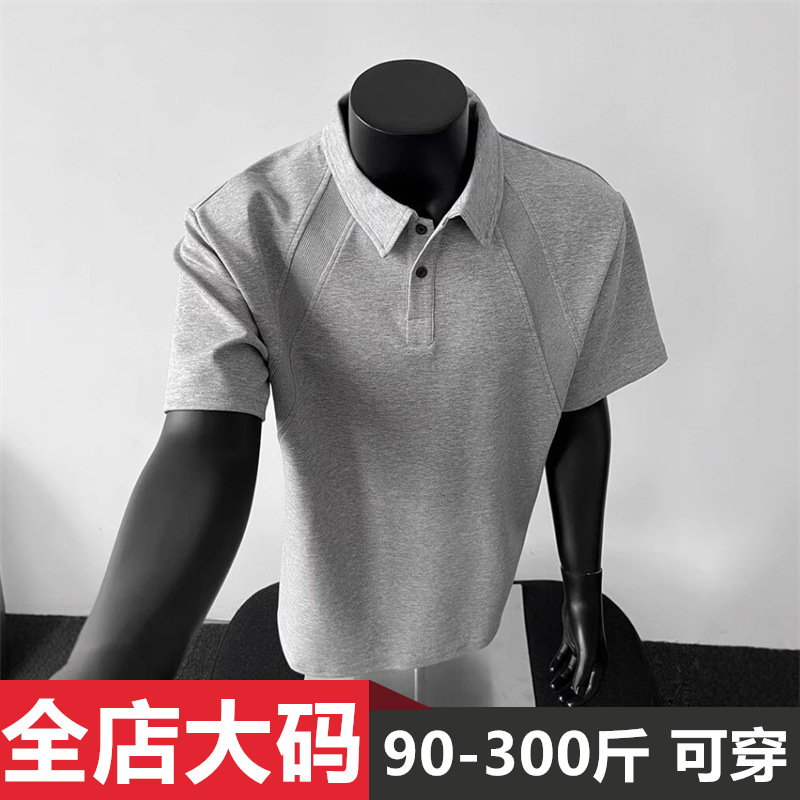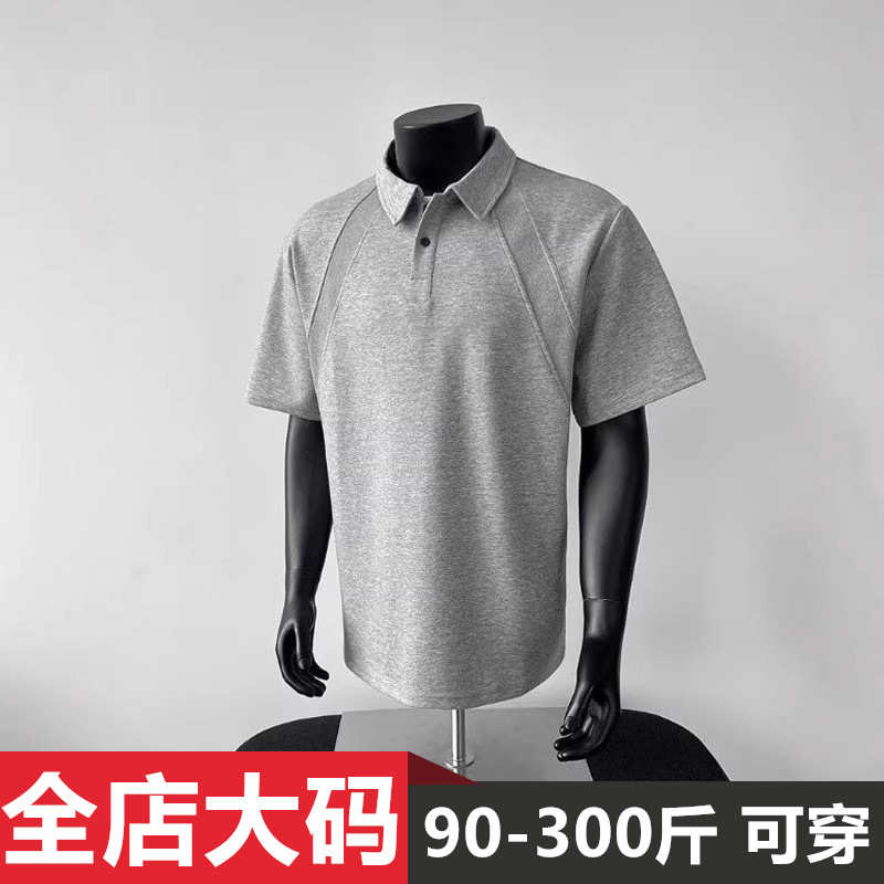 ヘビーグレー半袖メンズポロシャツ大きいサイズパッチワークデザインラグランTシャツスペースコットンラペル5分袖