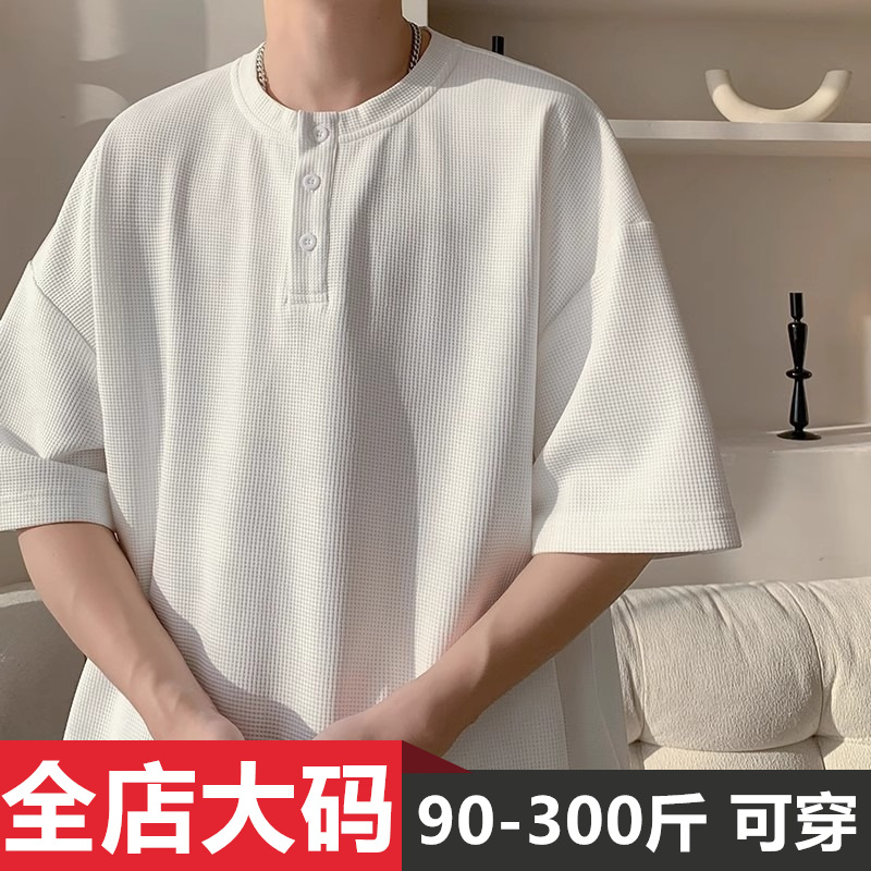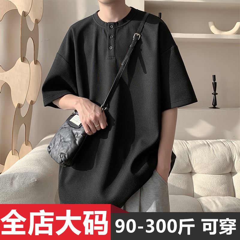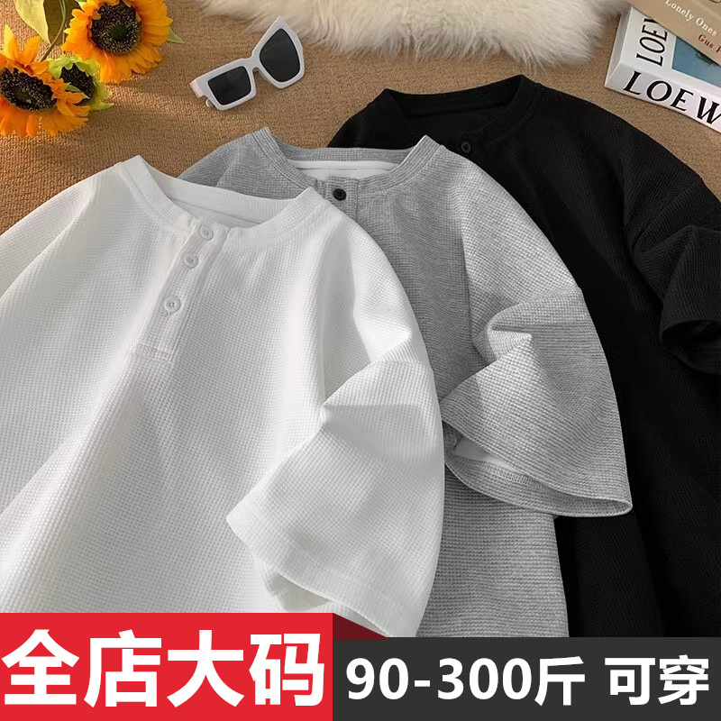 夏大きいサイズ 150kg 半袖 Tシャツメンズヘンリーカラーワッフルルーズトレンドカジュアル半袖インナーレイヤリングシャツ