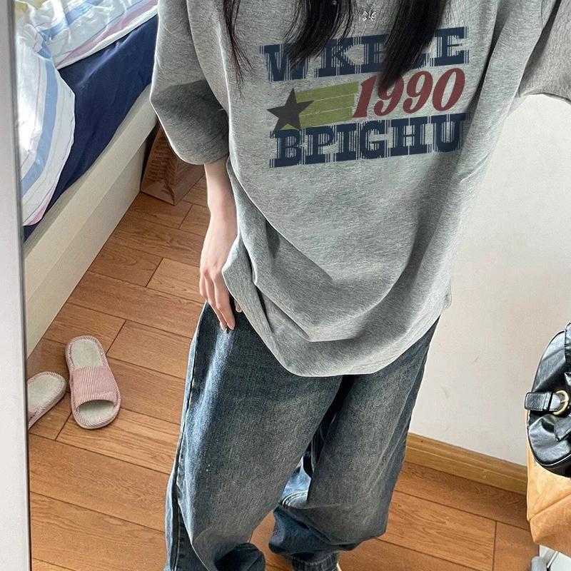 半袖メンズ夏新作レタープリント香港風Tシャツトレンディブランドカジュアル大きいサイズゆったり五分袖Tシャツトップス