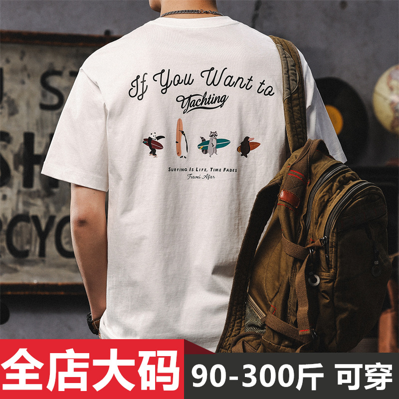 特大サイズ 150kg ヘビージャカード Tシャツメンズ夏半袖カップルアメリカンレトロルーズハイエンド Tシャツ