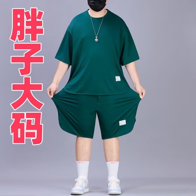 T952 + 962 大きいサイズアイスシルクスーツメンズ半袖トレンディなファットマン速乾性クロスボーダーヨーロッパとアメリカのショーツスポーツウェア夏
