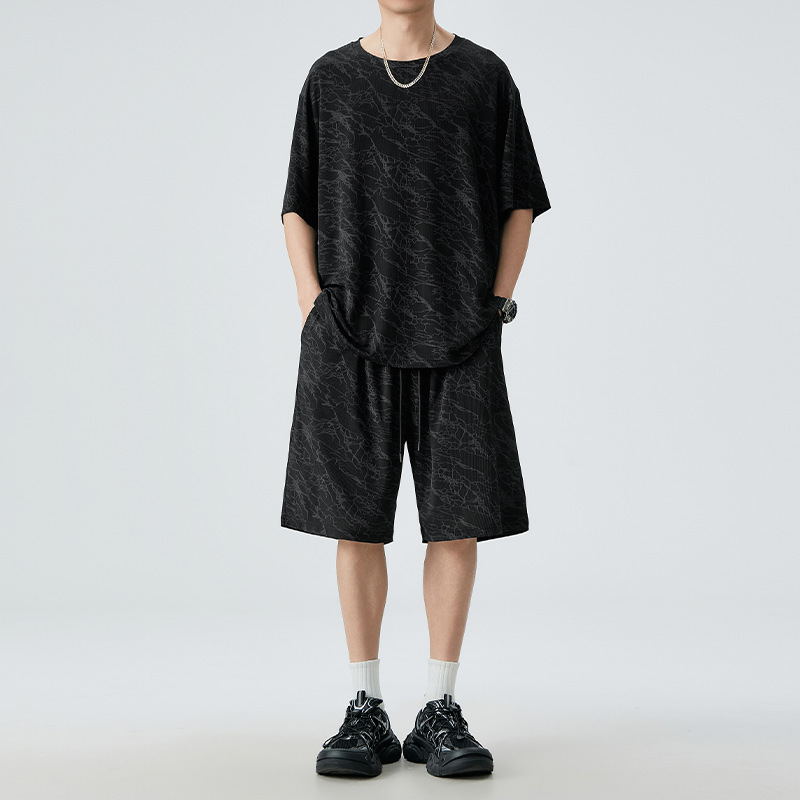 8398 8399大きいサイズ氷糸スーツ男性潮クロスボーダー欧米氷感カジュアルファッションショートT袖ショーツスポーツウェア