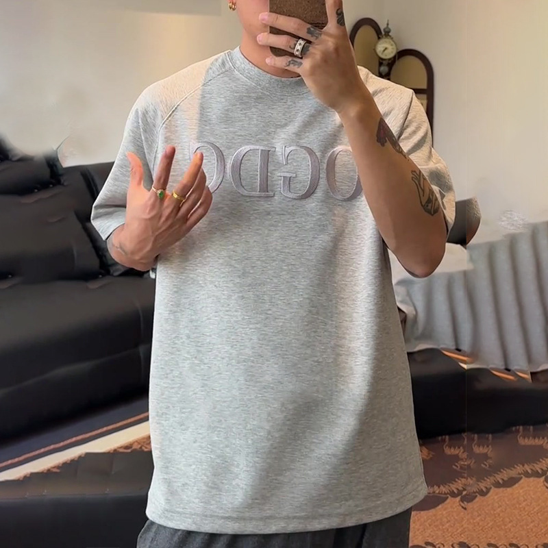 Laoyan オリジナルアイスフィールピュアコットンヘビー刺繍半袖 Tシャツメンズ新しい絶妙なカジュアルトップ