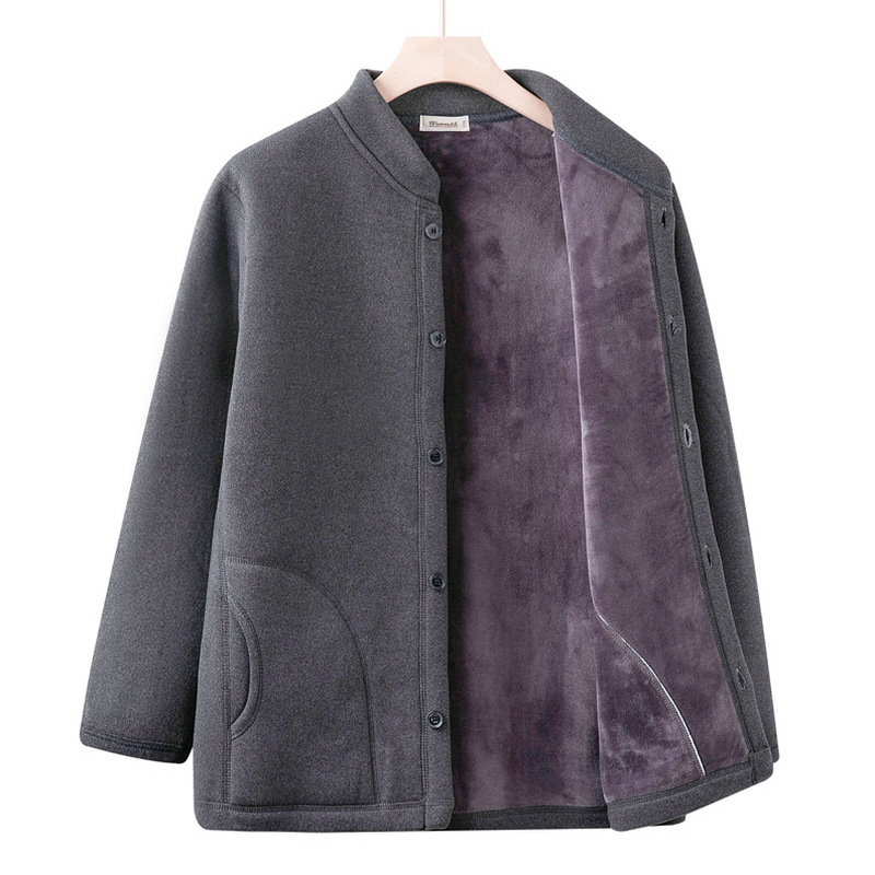中高年男性用裏起毛カーディガン、防寒トップス、冬服、ゆったりとした開襟の純綿厚手ジャケット、お父さん向け