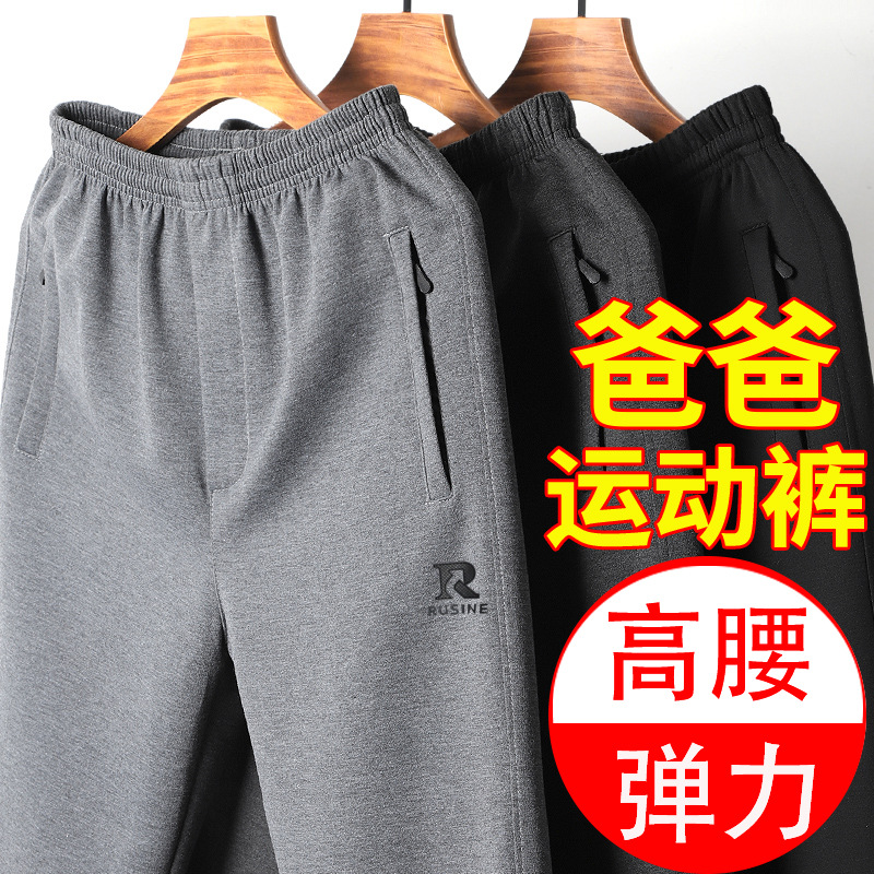 秋の中高年のお父さんは腰を緩めてカジュアルなスポーツのズボンの春秋のタイプの老人のおじいさんのズボンの秋の服装の男性のズボンを締めます。