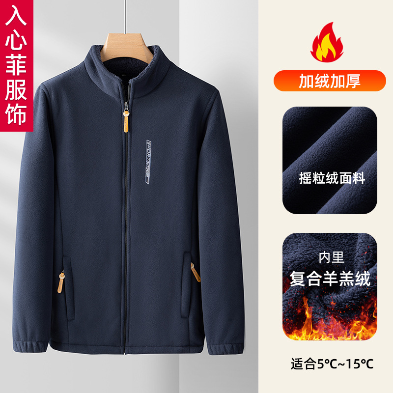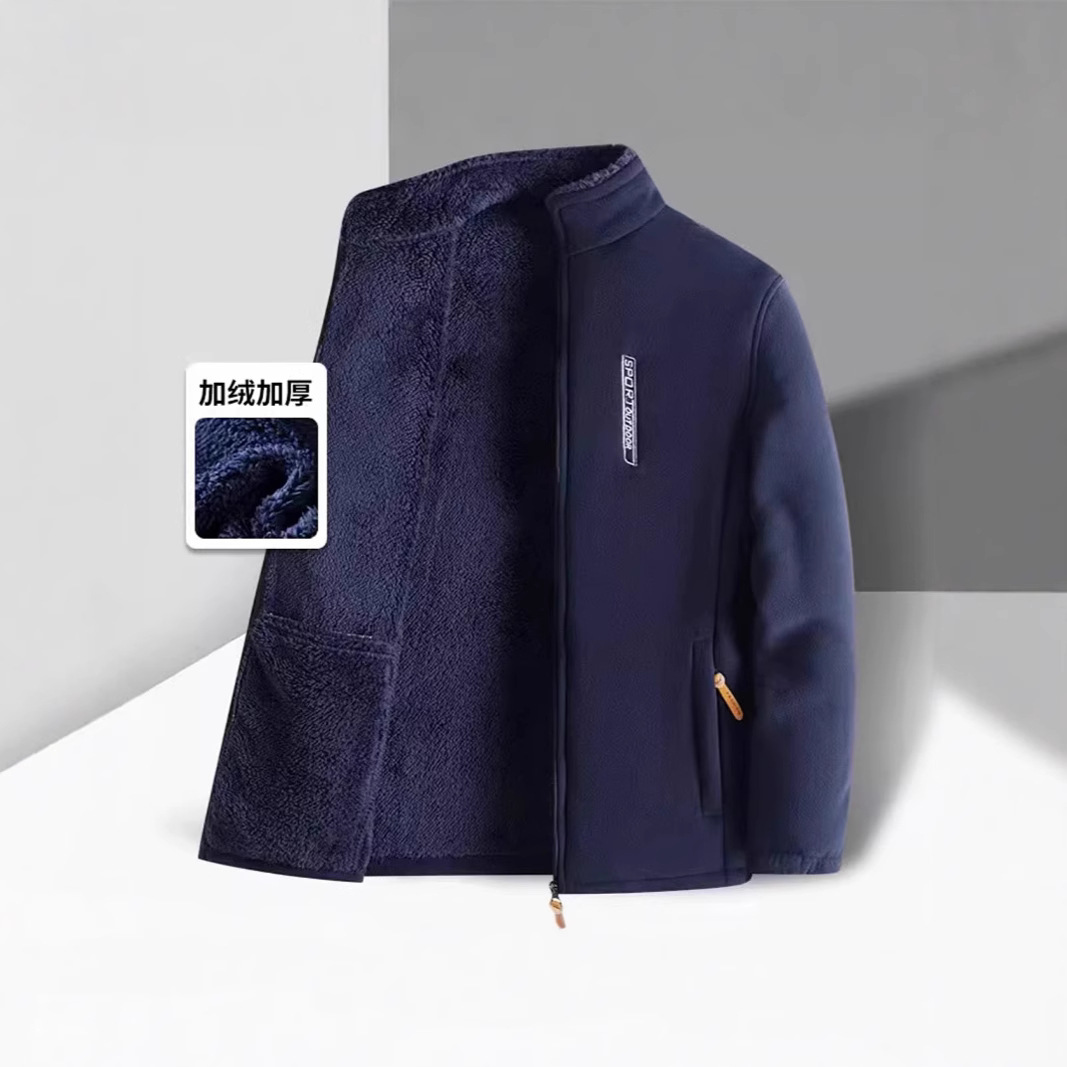 クロスボーダーブティックシュウ綿ベルベットプラスベルベット肥厚秋冬カジュアルポーラーフリース大きいサイズメンズアウトドアジャケット無地
