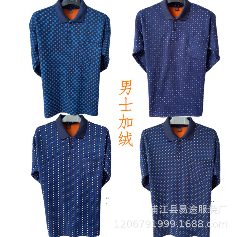 秋冬新款中老年男士翻领保暖衫爸爸装套头翻领加绒衬衫地摊货源