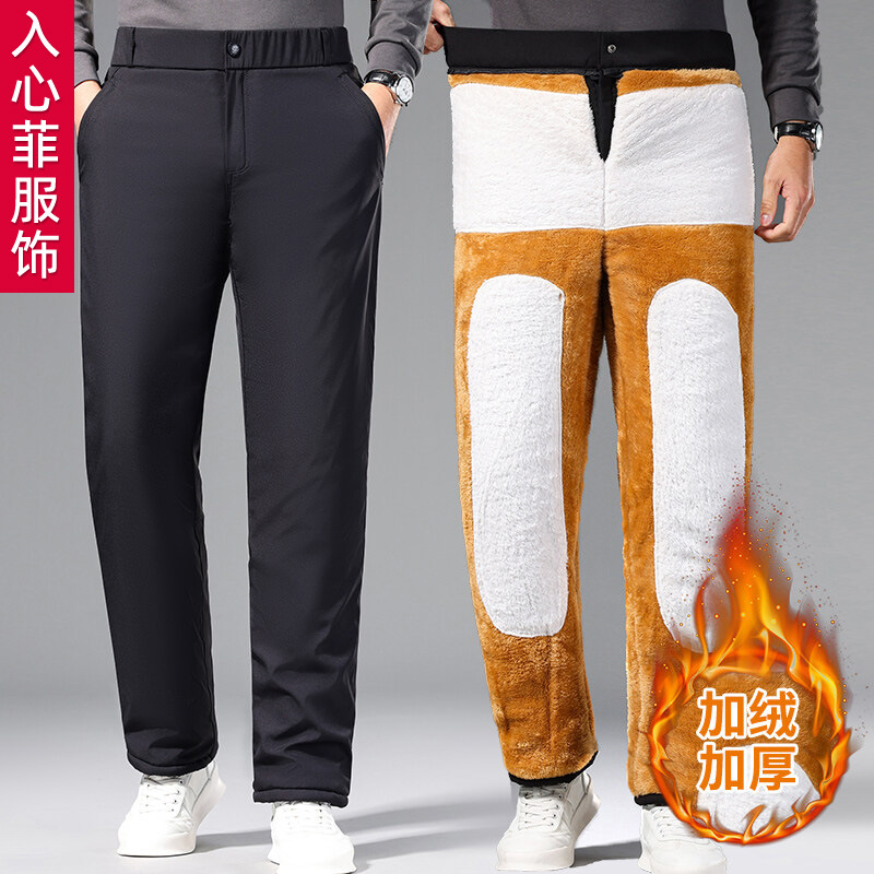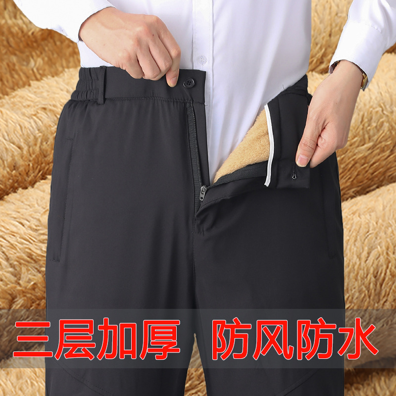 中年男性のお父さんのズボンの保温防風綿のズボンの冬の男性のズボンのベルベットの厚いズボンのカジュアルなズボンの外に着る