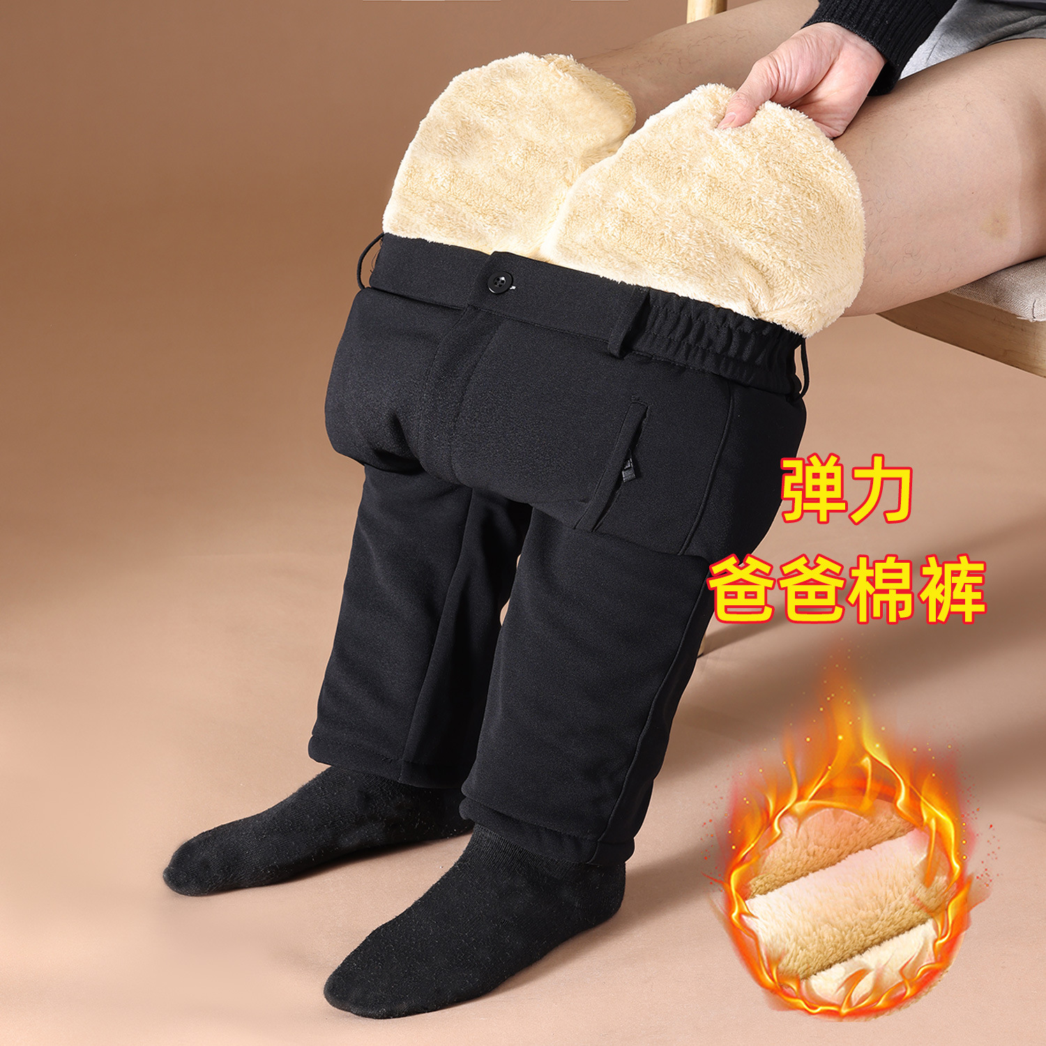 冬のお父さんは綿のズボンを厚くして、中高年のベルベットのカジュアルパンツを着ています。