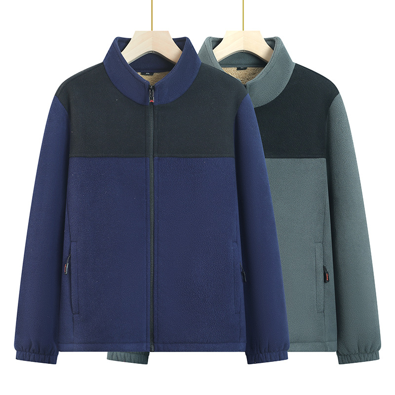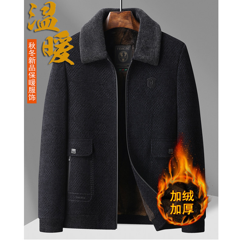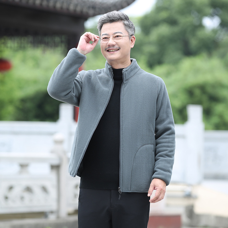 中高年秋冬服男性のフリースコートの父とベルベットの保温服の祖父は両面にベルベットの服を着ている