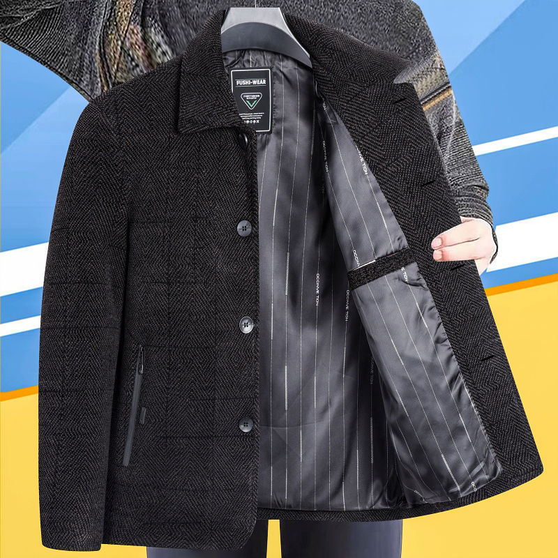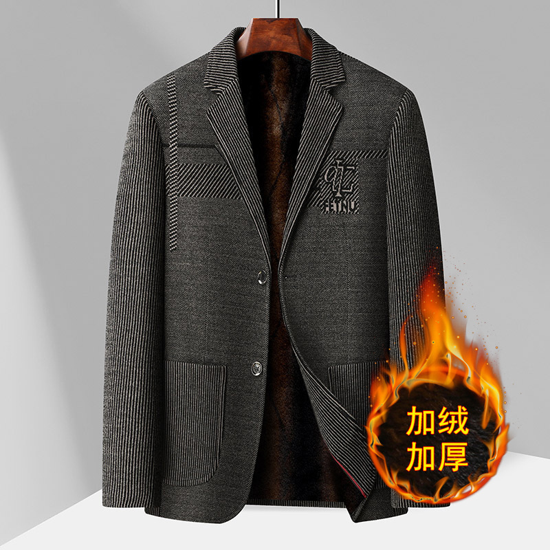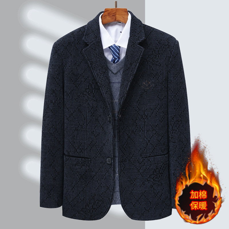 2024中高年男性カジュアルスーツ秋冬スタイルのベルベットスーツファッションシングル西男性コート高級父親服