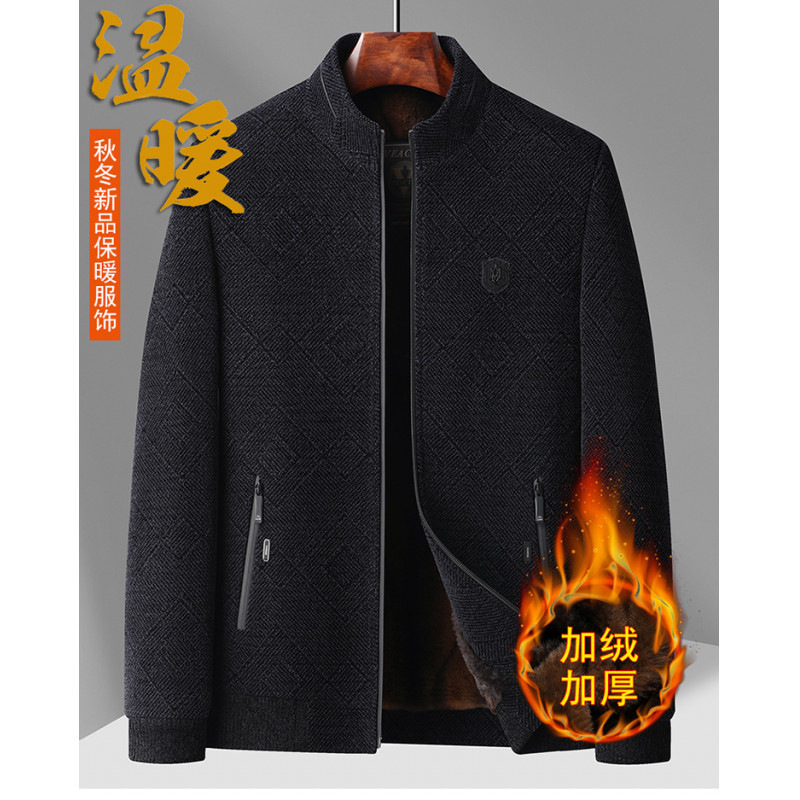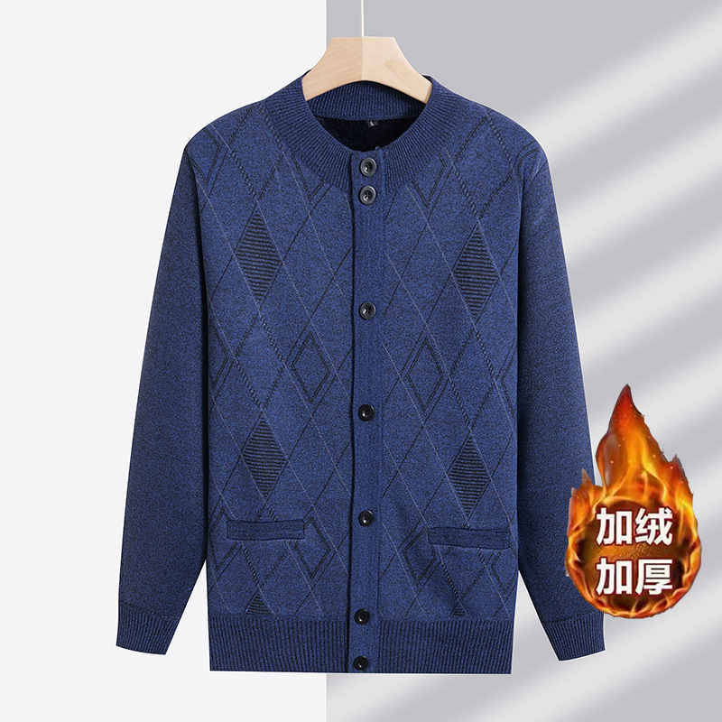 男性用カジュアルベルベット保温秋冬カーディガン立襟コート父冬ジャカードセーター
