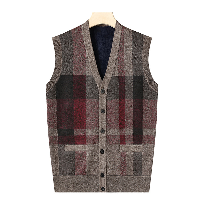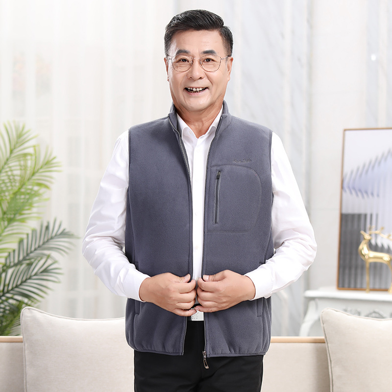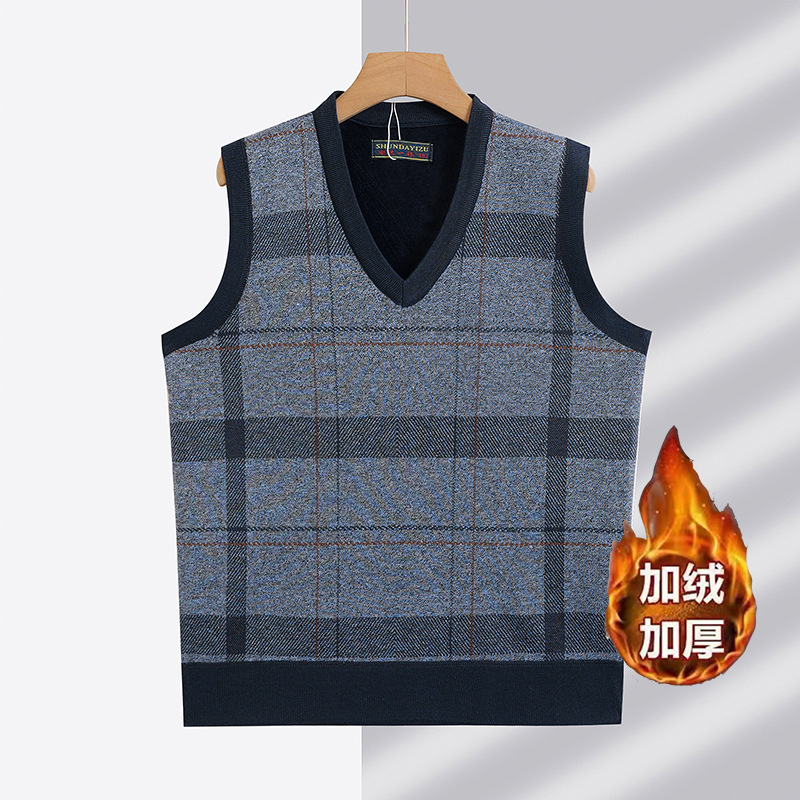中高年男性用ニットカーディガン、裏起毛ベスト、セーター、お父さん用ベスト、防寒厚手保温ベスト