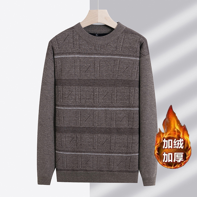 秋冬の新型丸首にベルベットをつけて男性のセーターのニットのジャカードの父は長袖の厚いセーターを着て底を打った