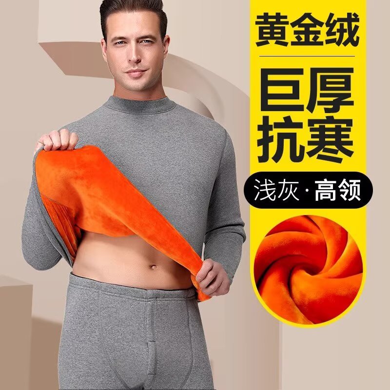 保温下着の男性は、秋冬の半高襟のシャツの秋冬のズボンのスーツを厚くしています